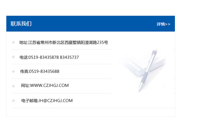傳真:0519-83435688    郵編:213135    網址:WWW.czjhgj_com.0710360.com    電子郵箱:JH@czjhgj_com.0710360.com